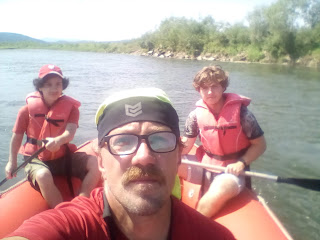 Tradycyjnie, zaczynamy od Chorwacji w Jurkowie. Tym razem jestem z moimi chłopcami i... mamy pewien problem - ponton jest liczony na dziewięć osób, ok! Ale nas jest trzech! Co to znaczy? Ano ino to że będziemy mieli ciut roboty więcej, bo o ile do przodu popłynie z nurtem, o tyle do tyłu, już nie bardzo, a i na boki z ociąganiem, więc manewry muszą być stosunkowo wcześniej rozpoczynane. Gdyż na to żeby nas obijało po kamienicach, albo wyrzucało na brzeg, to się moja bosmańska dusza nie godzi.